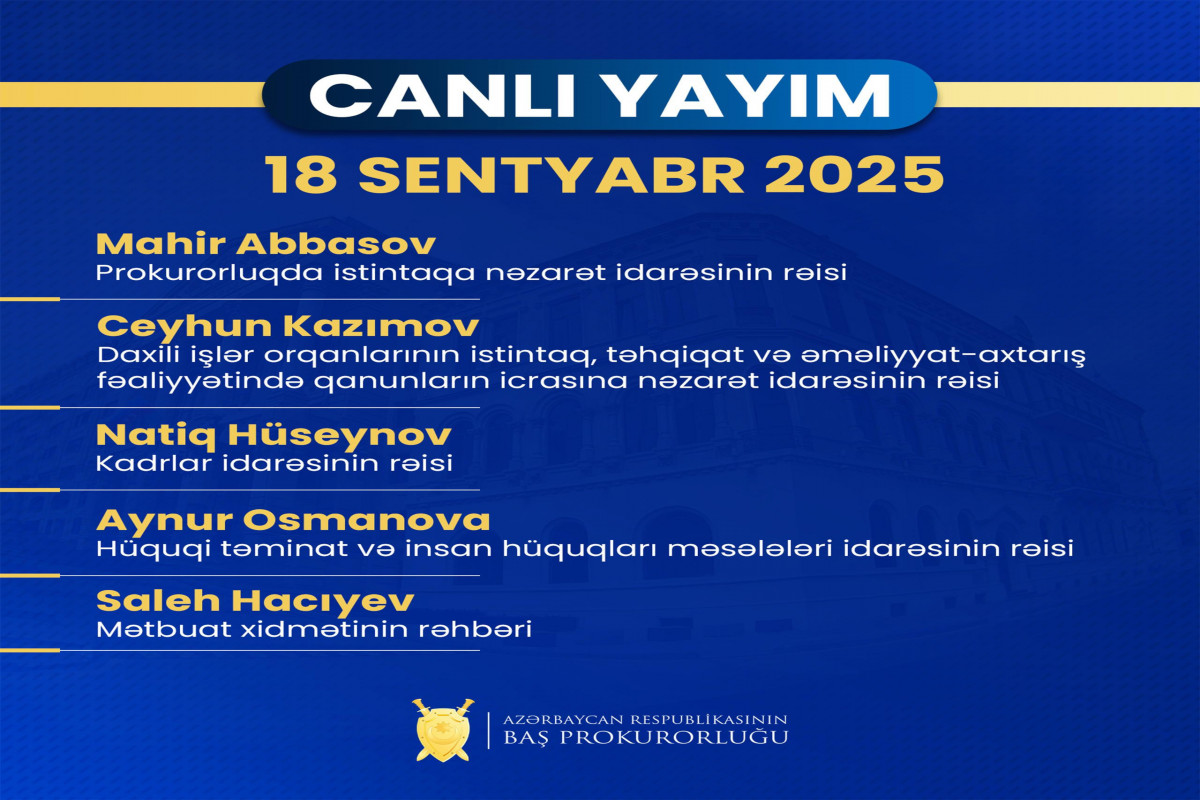 Məlumata görə, sentyabrın 18-də saat 11:00-dan saat 12:00-dək Baş Prokurorluğun instagram sosial şəbəkəsindəki səhifəsində (link: https://www.instagram.com/prokurorluq/) canlı yayım keçiriləcək.